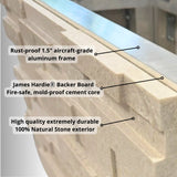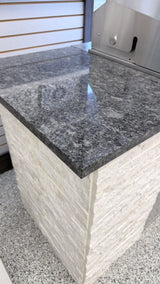 The base of any island is an aircraft-grade aluminium frame, which is 100% rust proof. Added to this is a layer of mold-proof Hardie Backer cement board, to which the natural stone is directly attached. This three layer system provides an extremely durable construction.